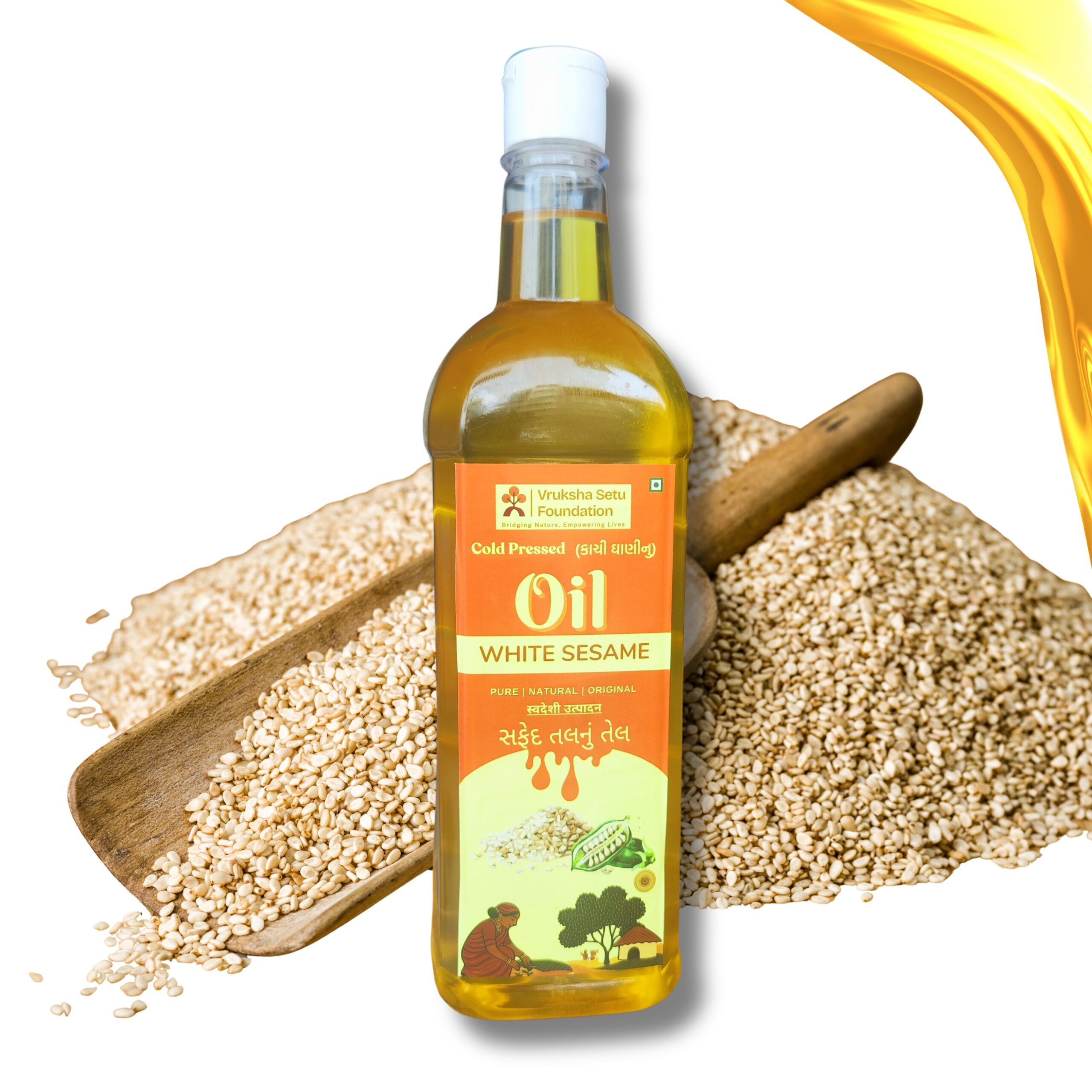 Vruksha Setu Cold-Pressed White Sesame Oil – Pure, Non-Filtered & Nutrient-Rich